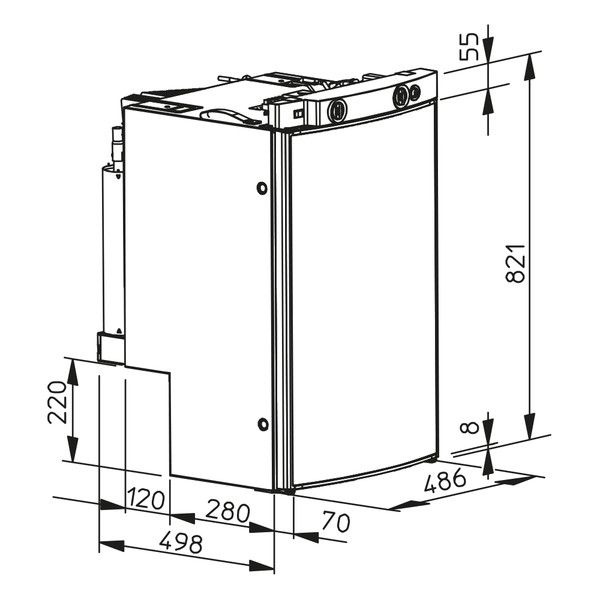 Dometic RMS 8400 Lodówka absorpcyjna, zawiasy L (zamrażalnik, wcięcie na nadkole, zapłon z akumulatora)