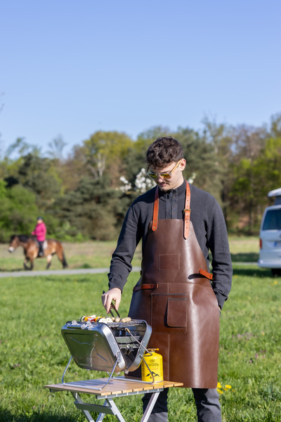 Fartuch grillowy skórzany brązowy - Holiday Travel