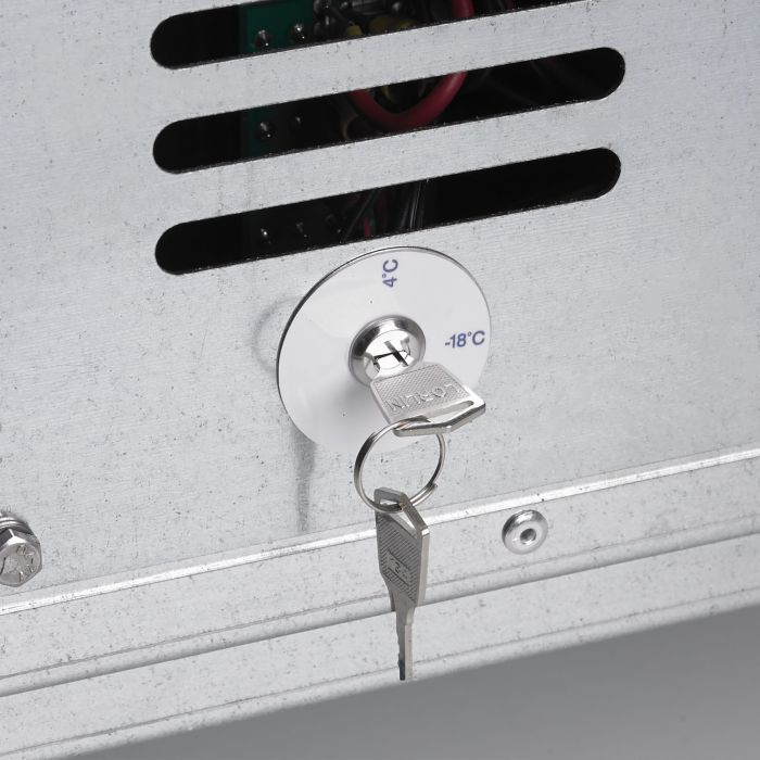 Jest dostarczany z dwoma fabrycznie ustawionymi poziomami temperatur (+4°C lub -18°C), więc odpowiedni chłód jest utrzymywany przez cały czas.
