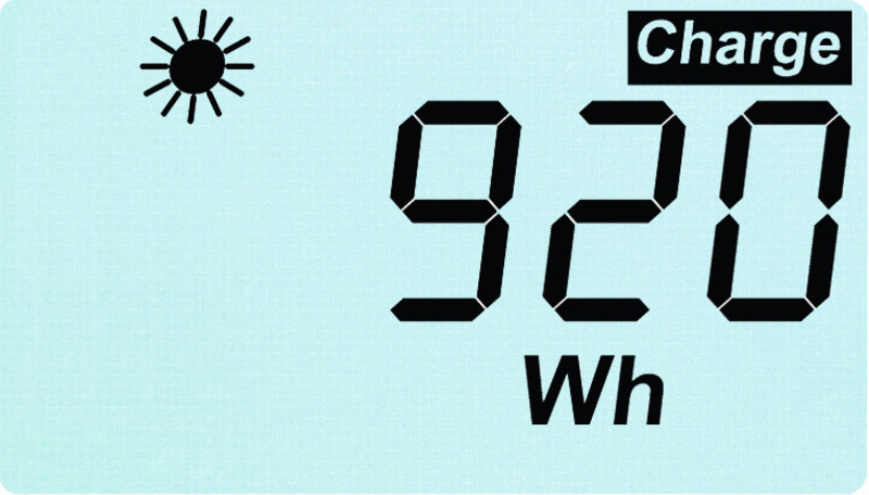 wyświetlane wartości: prąd ładowania, napięcie, moc, energia Ah/Wh