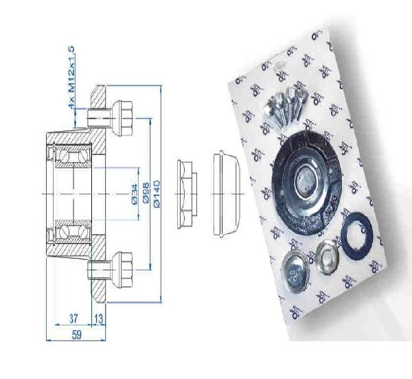 Piasta kuta 4 x 98 z łożyskiem, pakowana w blistry - Steelpress