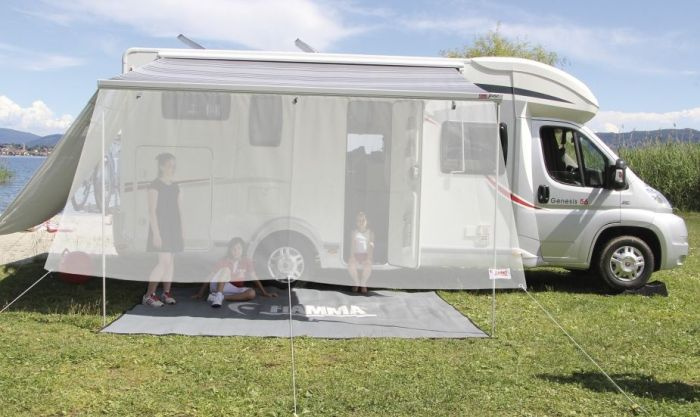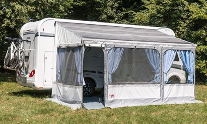 Opcjonalnie może być wyposażona w zabudowę (tworząc przedsionek) lub ścianki pojedyńcze (Blocker Pro, Sun View)