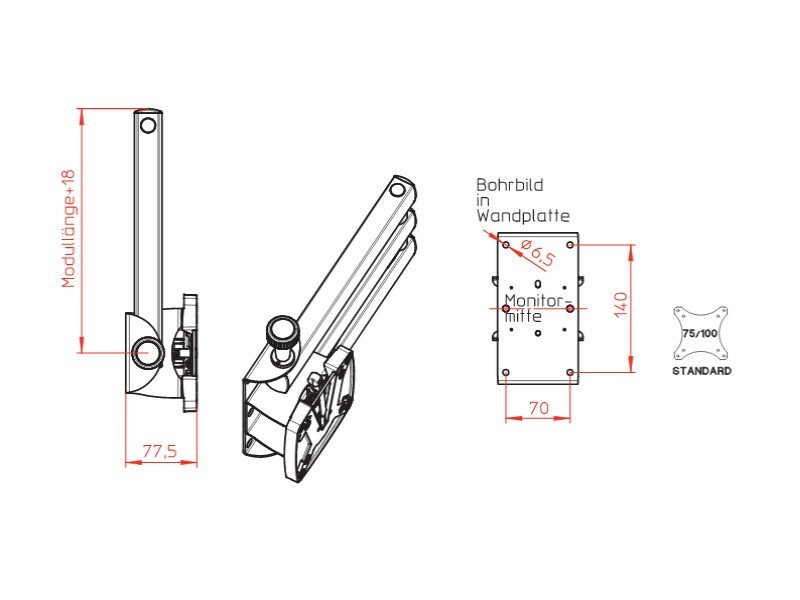 Podwójne ramię zwiększa zakres ustawienia ekranu