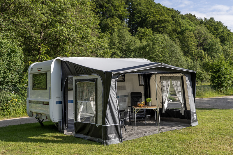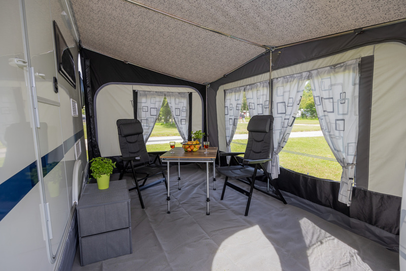 Przestrzeń użytkowa przed przyczepą – osłona przed słońcem i deszczem