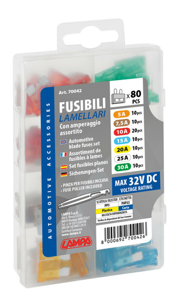 Zestaw bezpieczników płytkowych standard 12/32 V, 80 szt. - Lampa