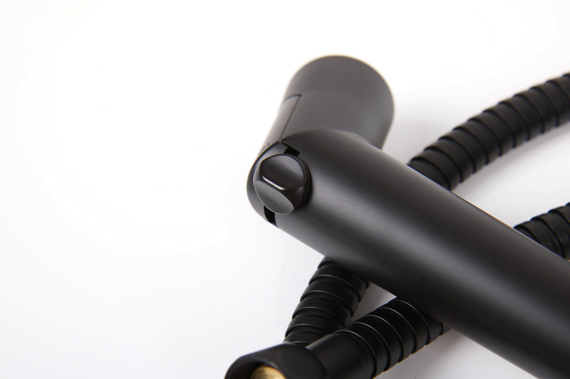 Matowe czarne wykończenie do łazienki w kamperze