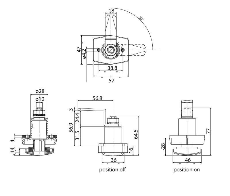 długość dźwigni: 51 mm