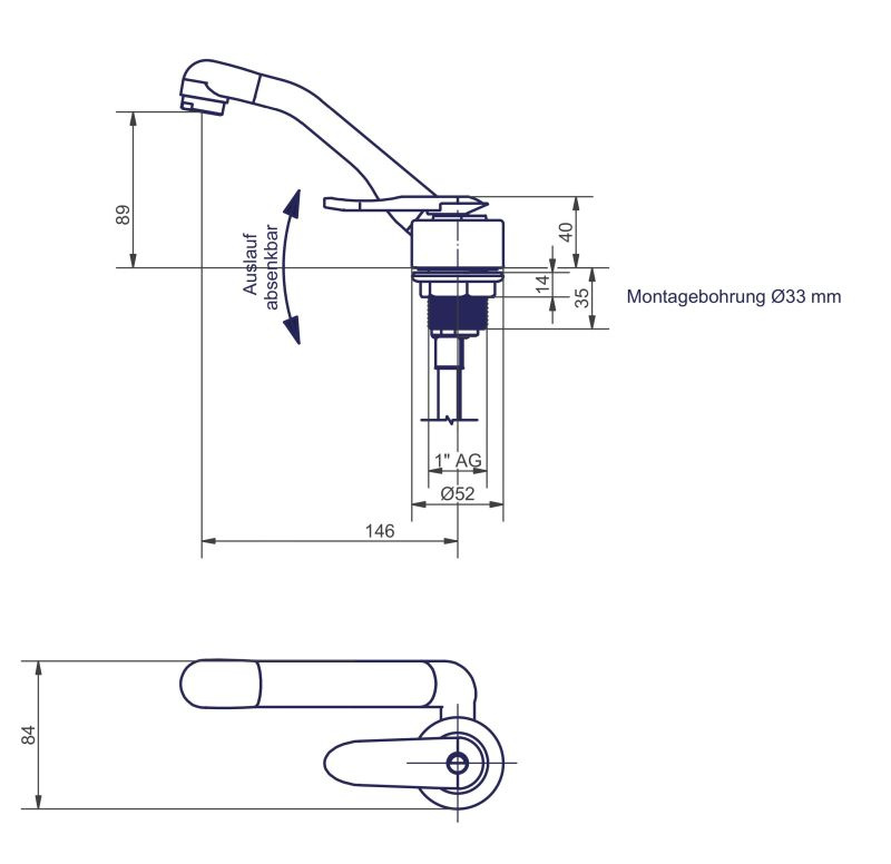 otwór montażowy: fi 33 mm