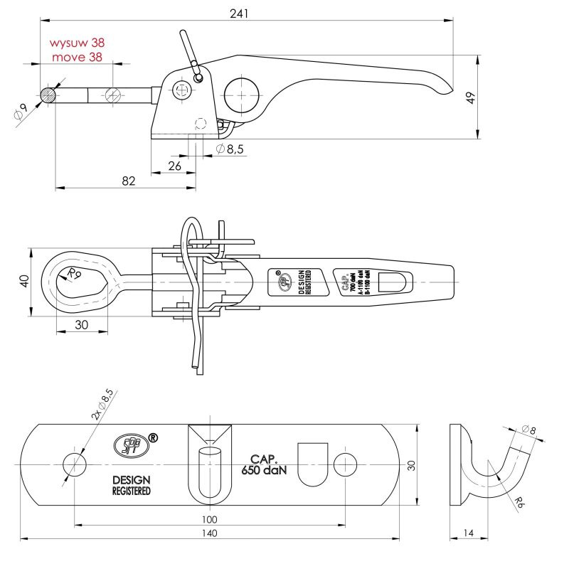 Zaczep burtowy przyczepy ZB-03 + zapinacz z uchem Z-03 - Steelpress