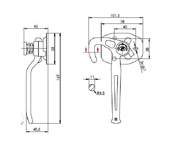 otwory mocujące: 3 x fi 7 mm