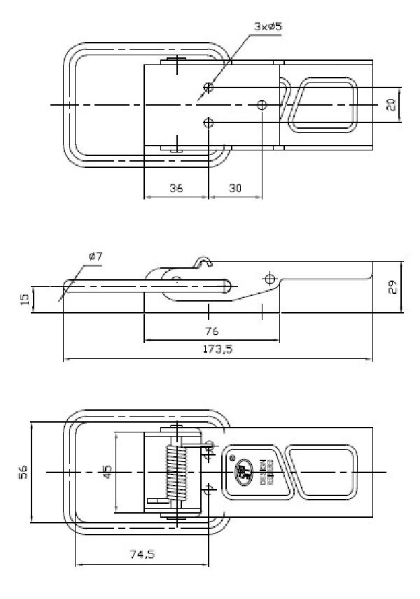 otwory mocujące: 3 x fi 5 mm