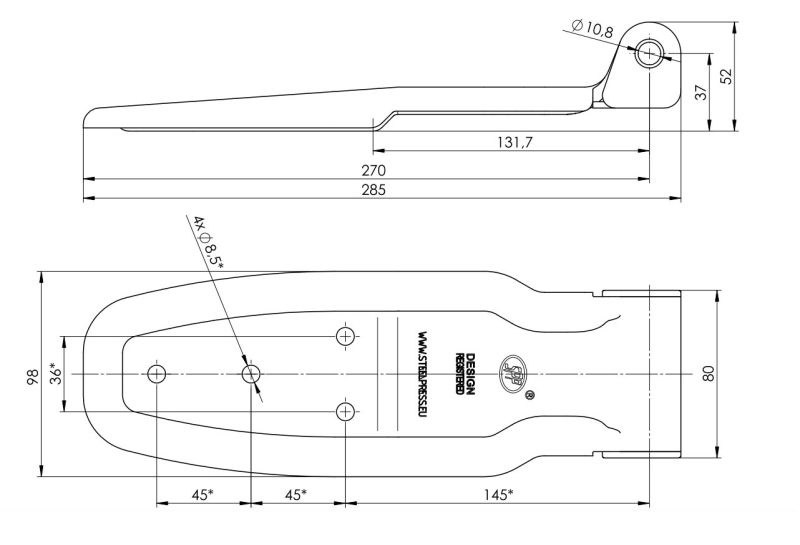 Zawias burtowy do zabudowy z otworami HB-01.270-02 - Steelpress