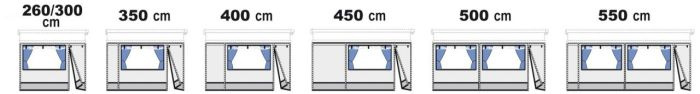 Boczne ściany ze zwijanymi oknami i moskitierą