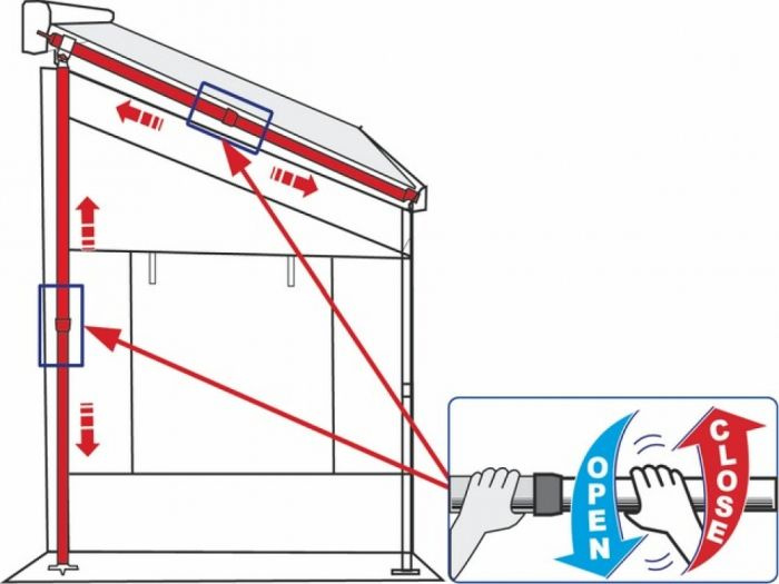 Cały przedsionek opiera się na rozwijanej markizie, do której zamkami błyskawicznymi dołączone zostają ściany, dzieki czemu czas rozłożenia jest niesamowicie krótki
